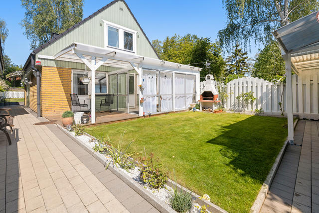 Familjevänlig villa på fin hörntomt med härligt uterum.