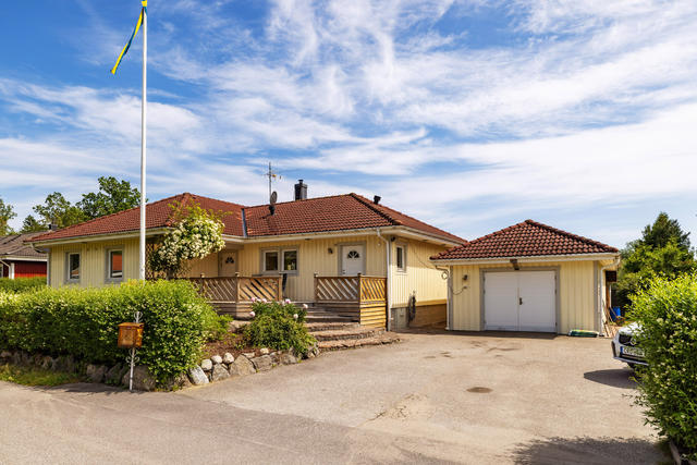 Trivsamt 1-planshus med nyrenoverat badrum, stort garage och härligt uterum!