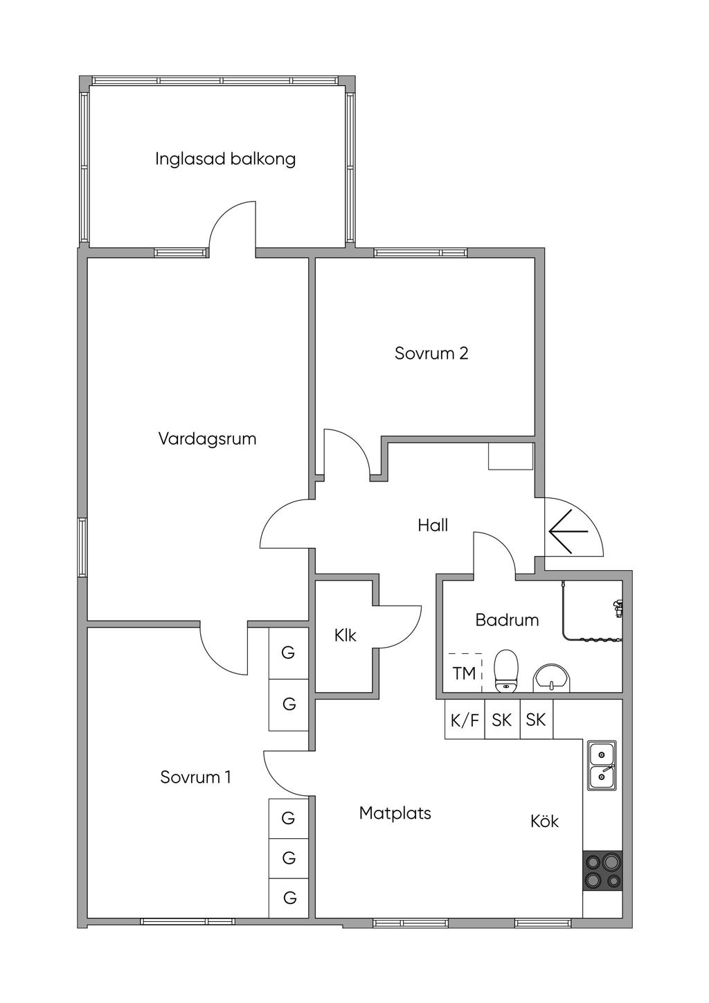 Ljus och hemtrevlig gaveltrea med stor inglasad balkong!