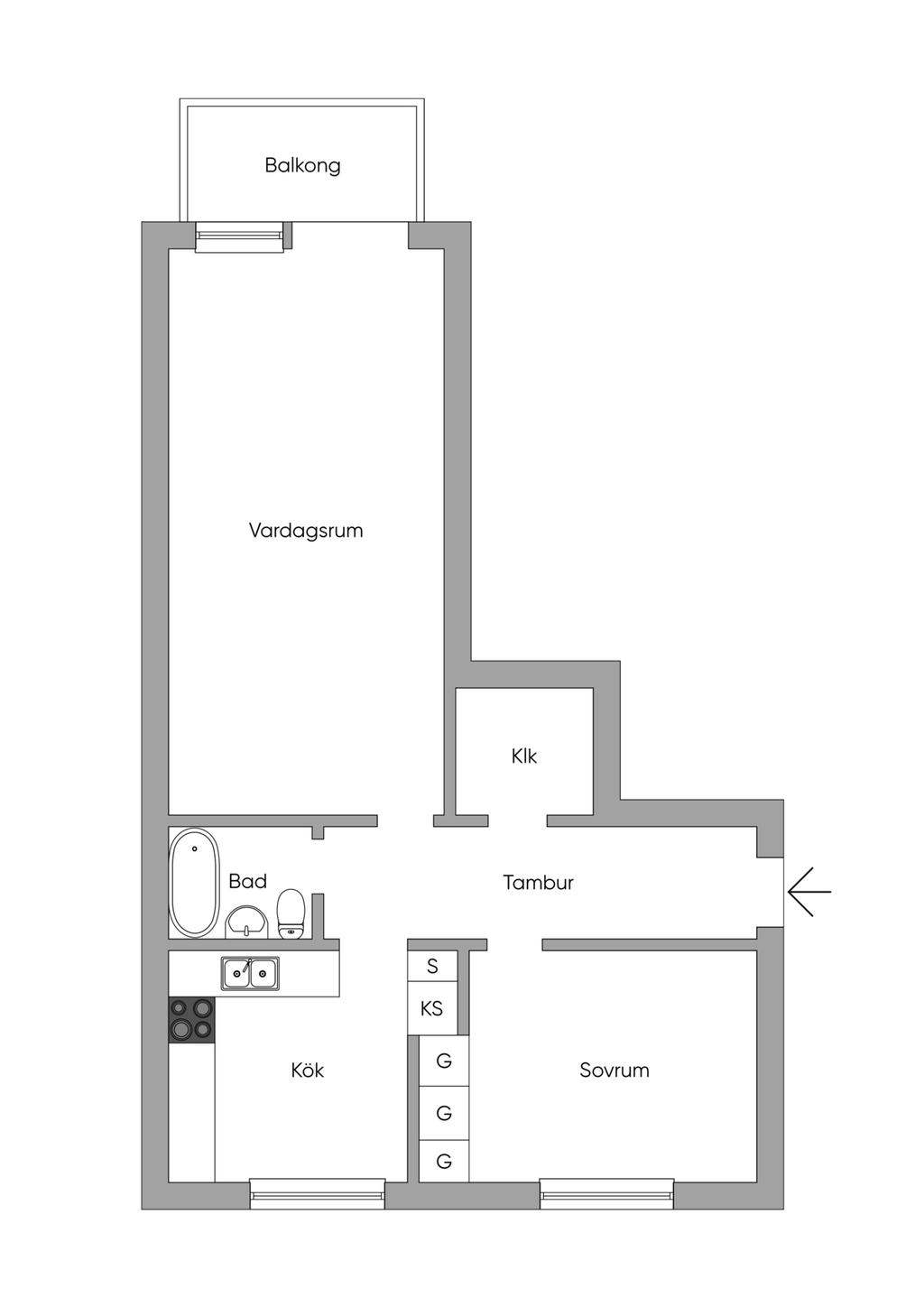 Ljus och välplanerad tvåa högst upp i huset med balkong i västerläge