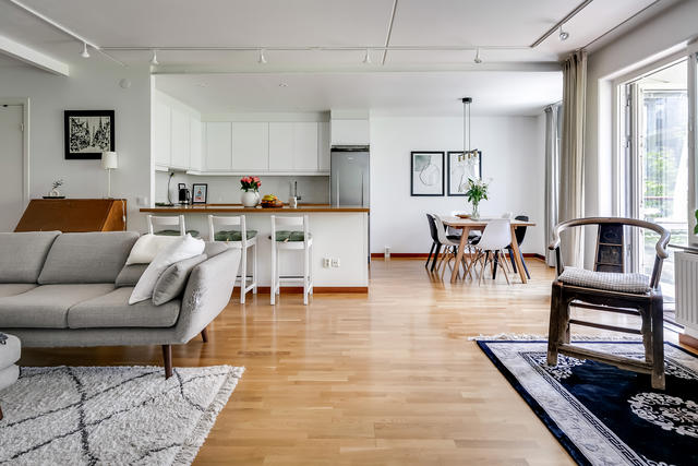 Ljus och rymlig trea med möjlighet till fyra rum – genomtänkt planlösning och sociala ytor