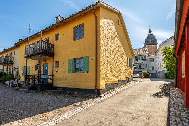 Snyggt renoverad trea intill de ikoniska trähusen på Kyrkberget i Strängnäs