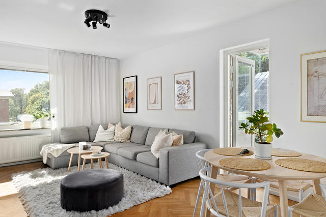 Smakfullt renoverad tvåa högst upp med takåsutsikt och solig balkong – centralt men ostört läge!