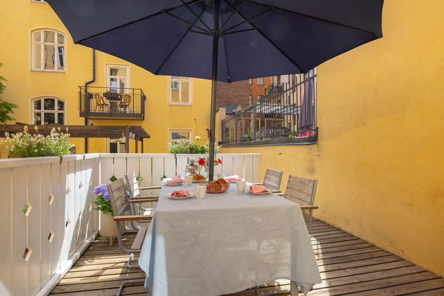 Radhuskänsla i Vasastan - sekelskiftespärla med terrass