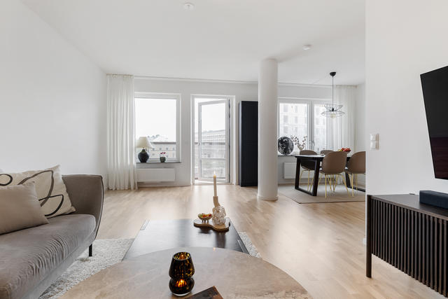 Ljus och modern fyra med sjöutsikt i västerläge – ett hem att trivas i