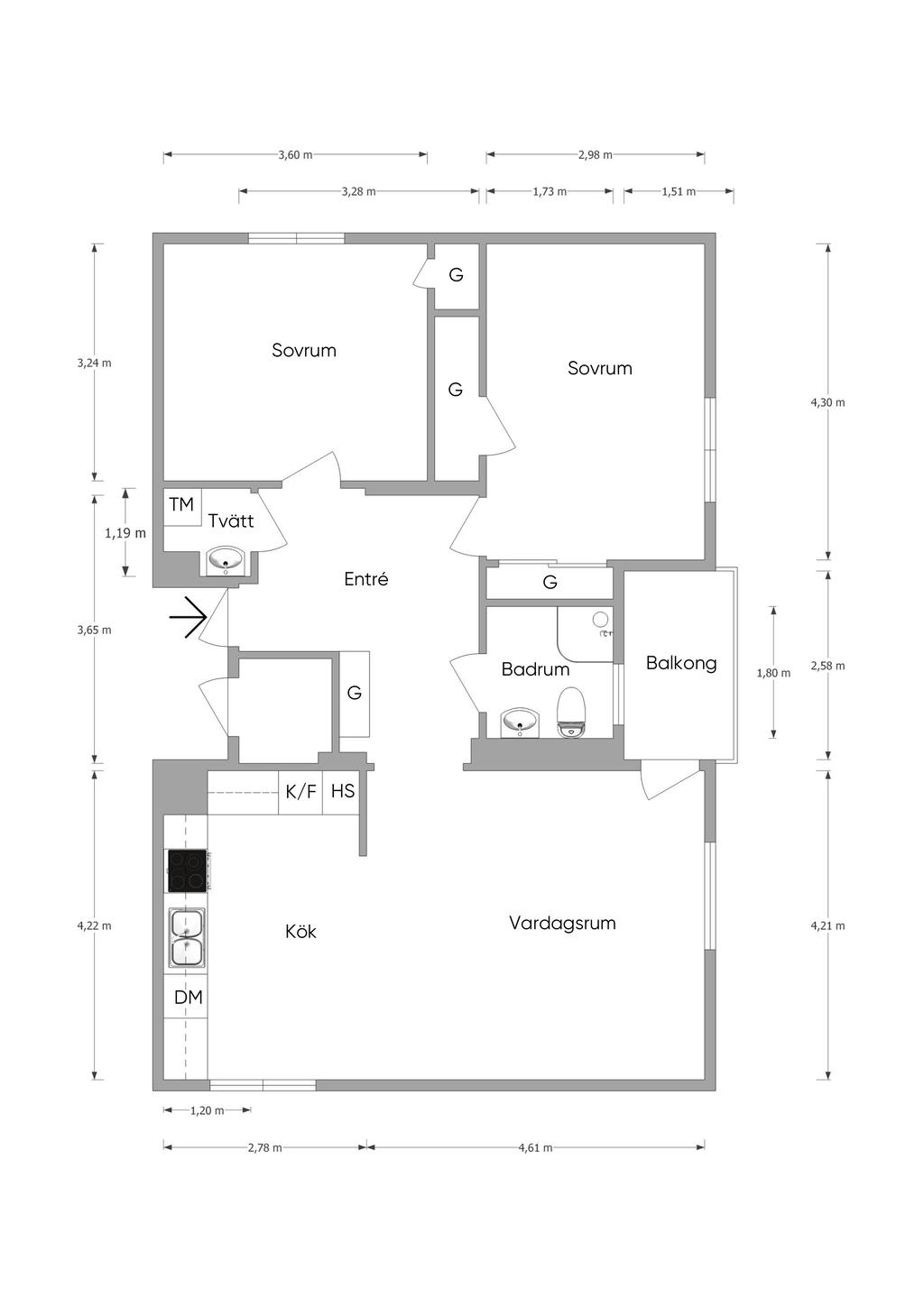 Mariekällgatan 32B- Välskött 3:a med helkaklat badrum och gäst-wc