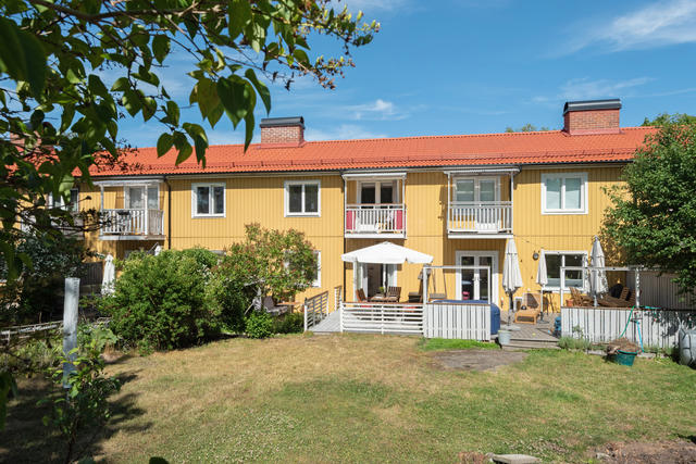 Välplanerat och charmigt radhus i populära Bagarmossen – med stor, friköpt tomt och tillbyggd entré!