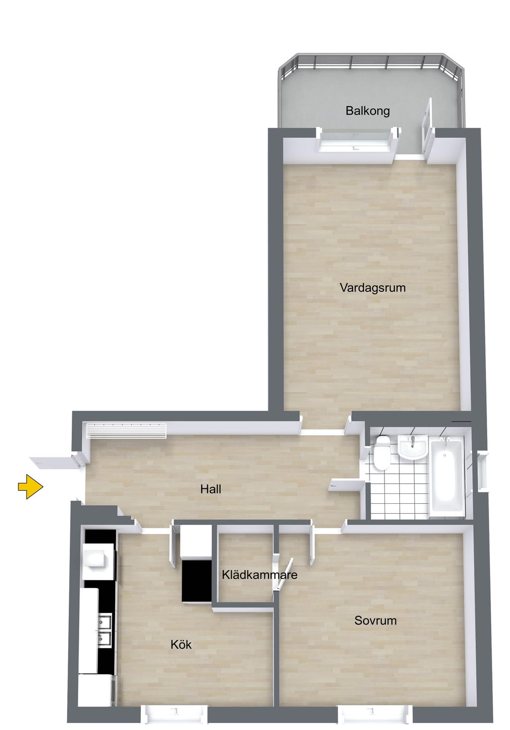 Gavellägenhet med härlig balkong i soligt läge och fönster i tre väderstreck!