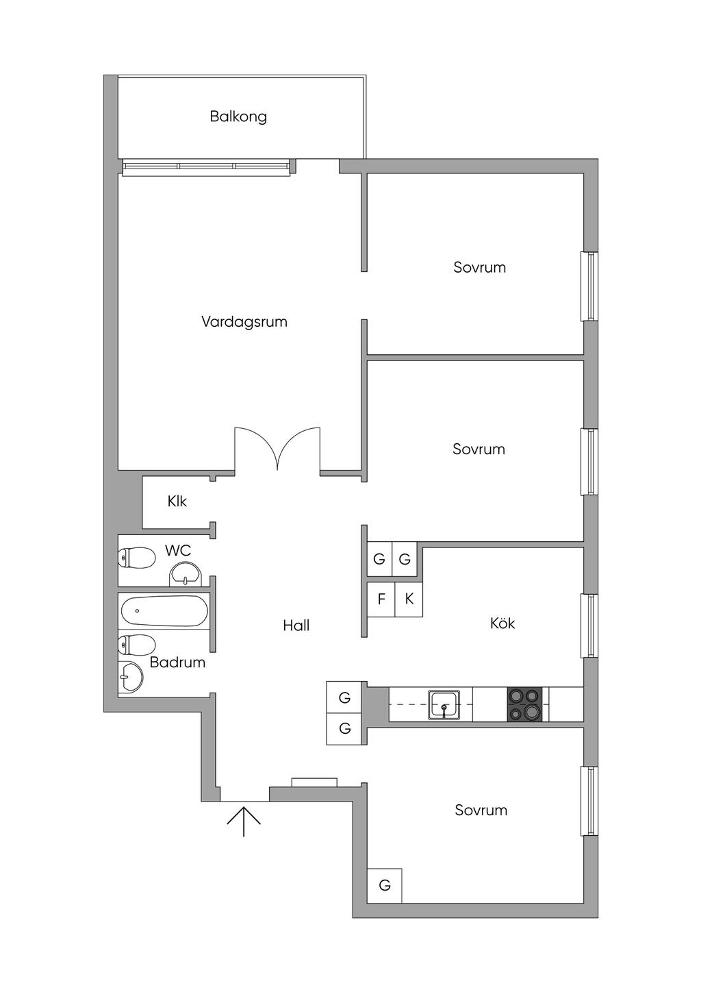 Gavel 4a med balkong i söderläge, renoveringsbehov