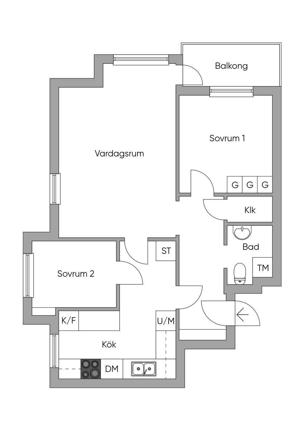 Ljus mini 3:a i gavelläge med inglasad balkong