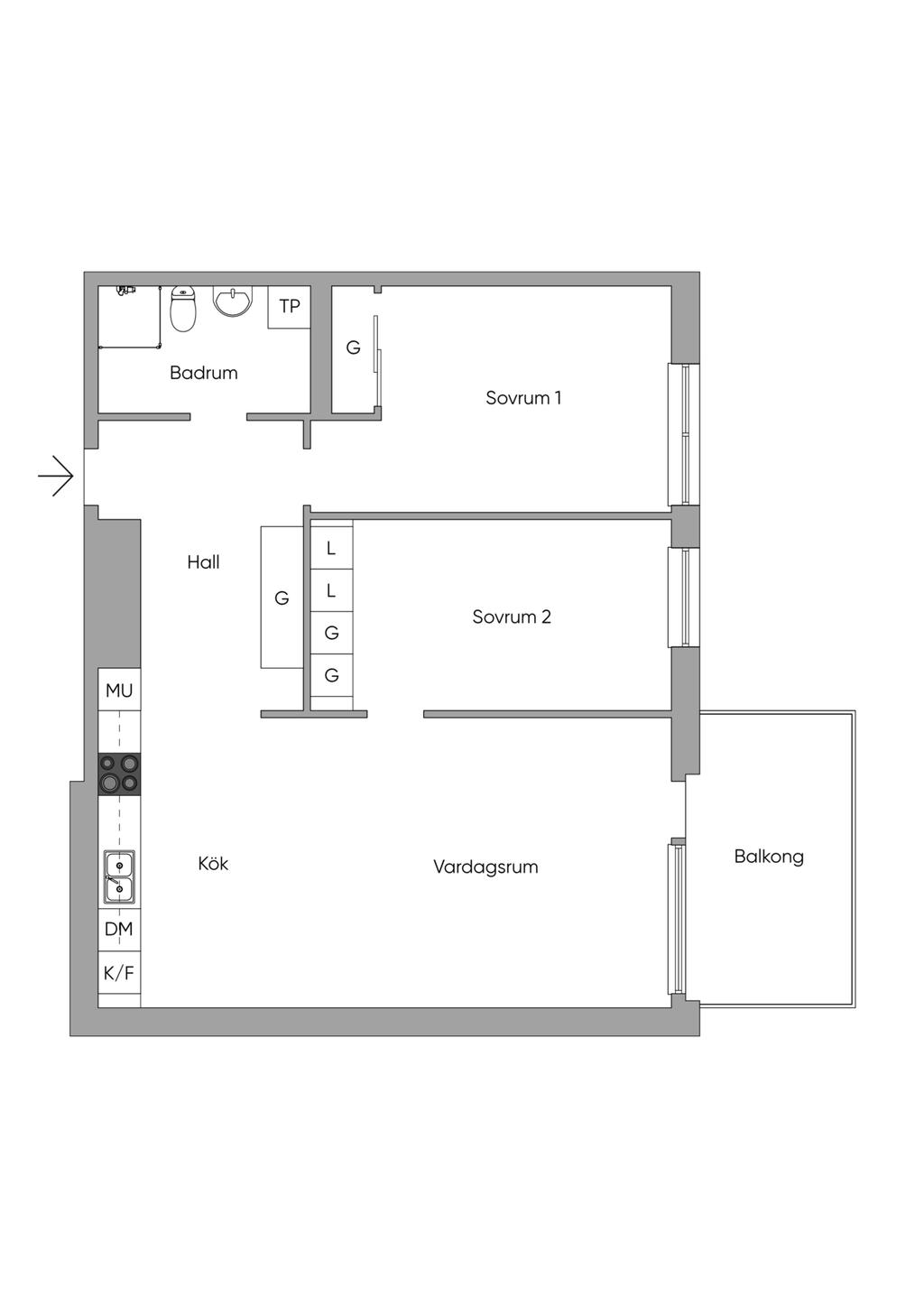 Välplanerad 3-rums lägenhet med öppen planlösning i obelånad förening.