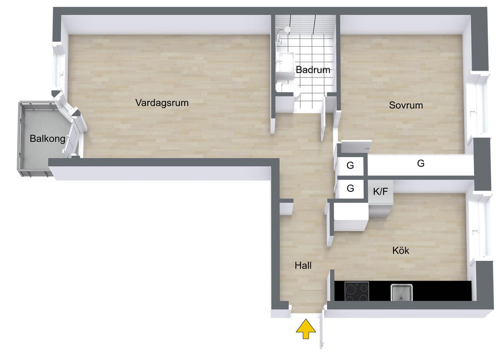 Välplanerad tvåa med balkong i soligt söderläge och centralt läge i Knivsta
