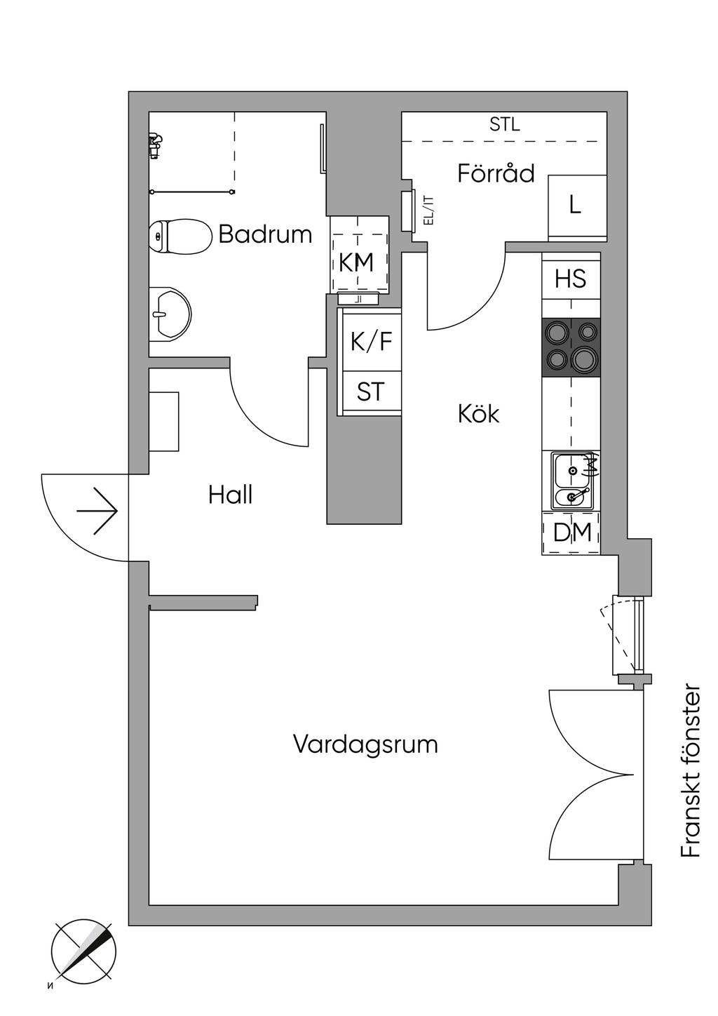 Välplanerad 1:a med fransk balkong mot mysig innergård!