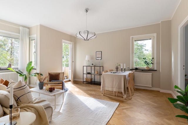 Ljus gaveltvåa med balkong, grönskande utsikt och nyrenoverat badrum