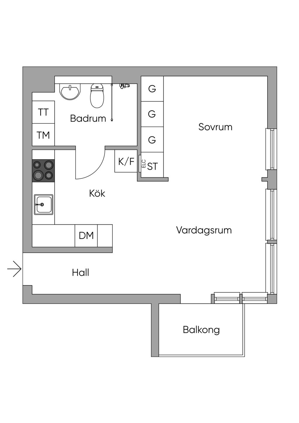 Välplanerad och ljus 1:a med balkong i attraktivt läge i Hammarby Sjöstad!