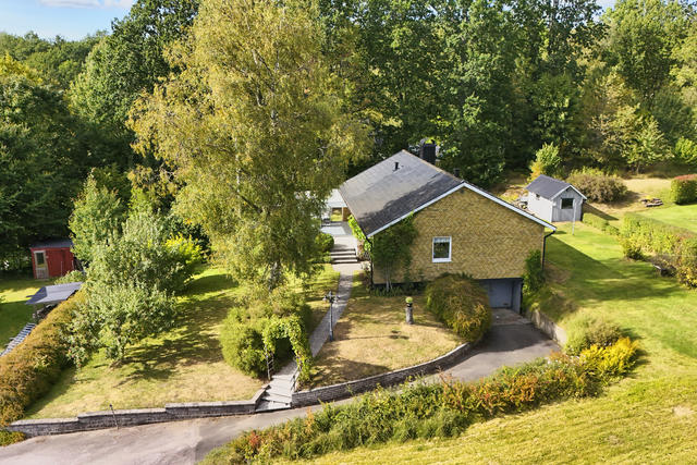 Välskött hem i Tvärred med lummig trädgård och inglasat uterum