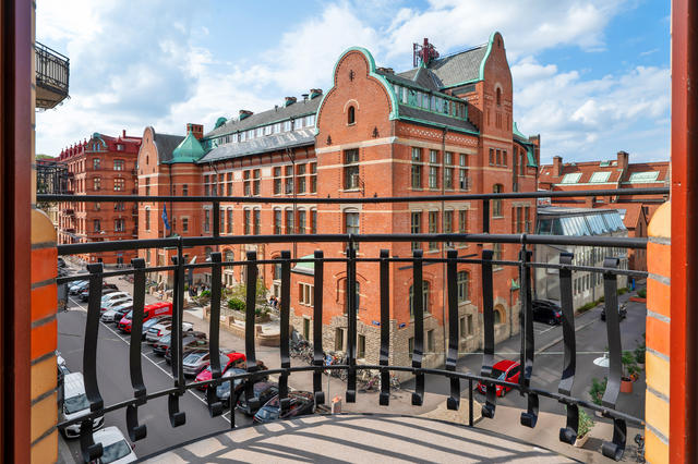 Underbar sekelskiftesvåning anno 1896 – fem rum med balkong i kvällssol på Kristinelundsgatan