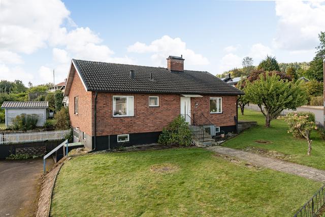Familjevänligt enplanshus med källare på större tomt i Skultorp!