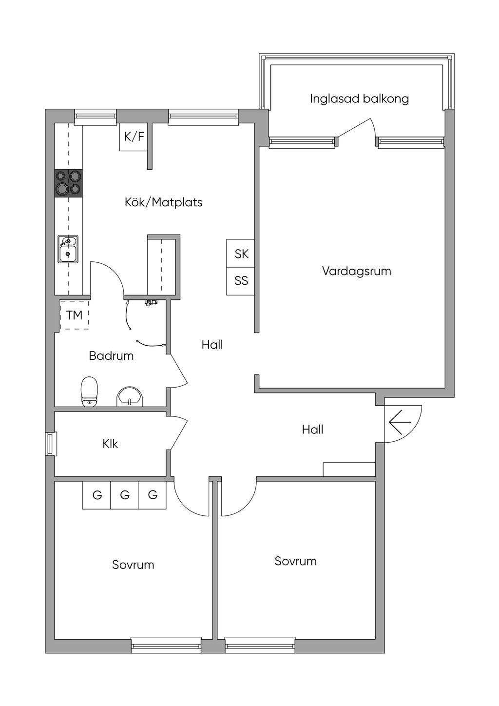 Välvårdad trea med inglasad balkong på första våningen. Låg Avgift
