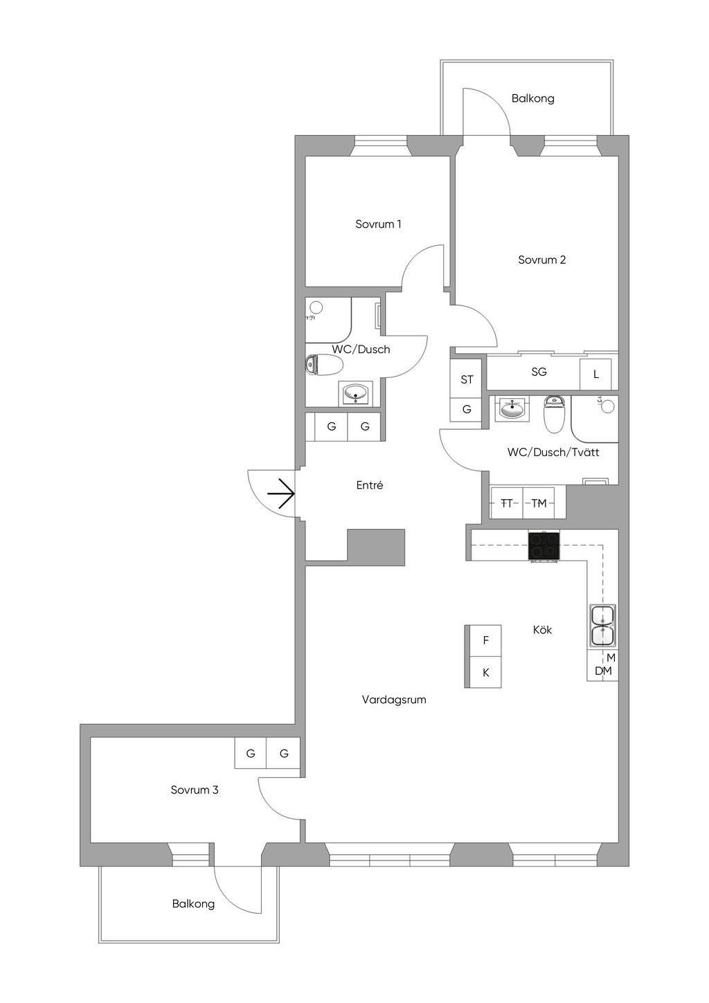 Högt upp i huset med två balkonger med både kväll och förmiddagssol!