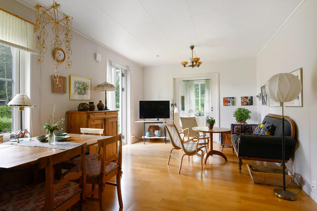 Välskött gaveltrea med solig uteplats, parkering och radhuskänsla – allt från el till p-plats ingår!