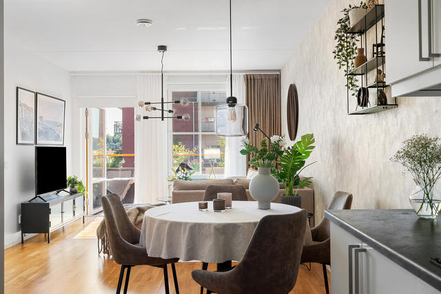 Stilren och modern genomgångslägenhet med egen p-plats och balkong åt sydväst!