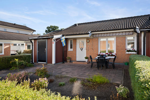 Hemtrevligt enplans parhus med potential i idylliska Jonstorp