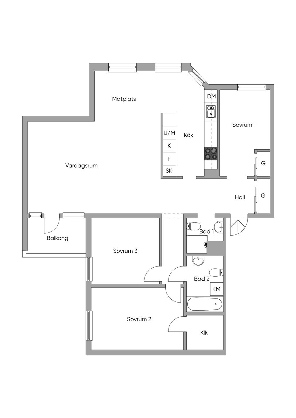 Central 4:a med två helkaklade badrum