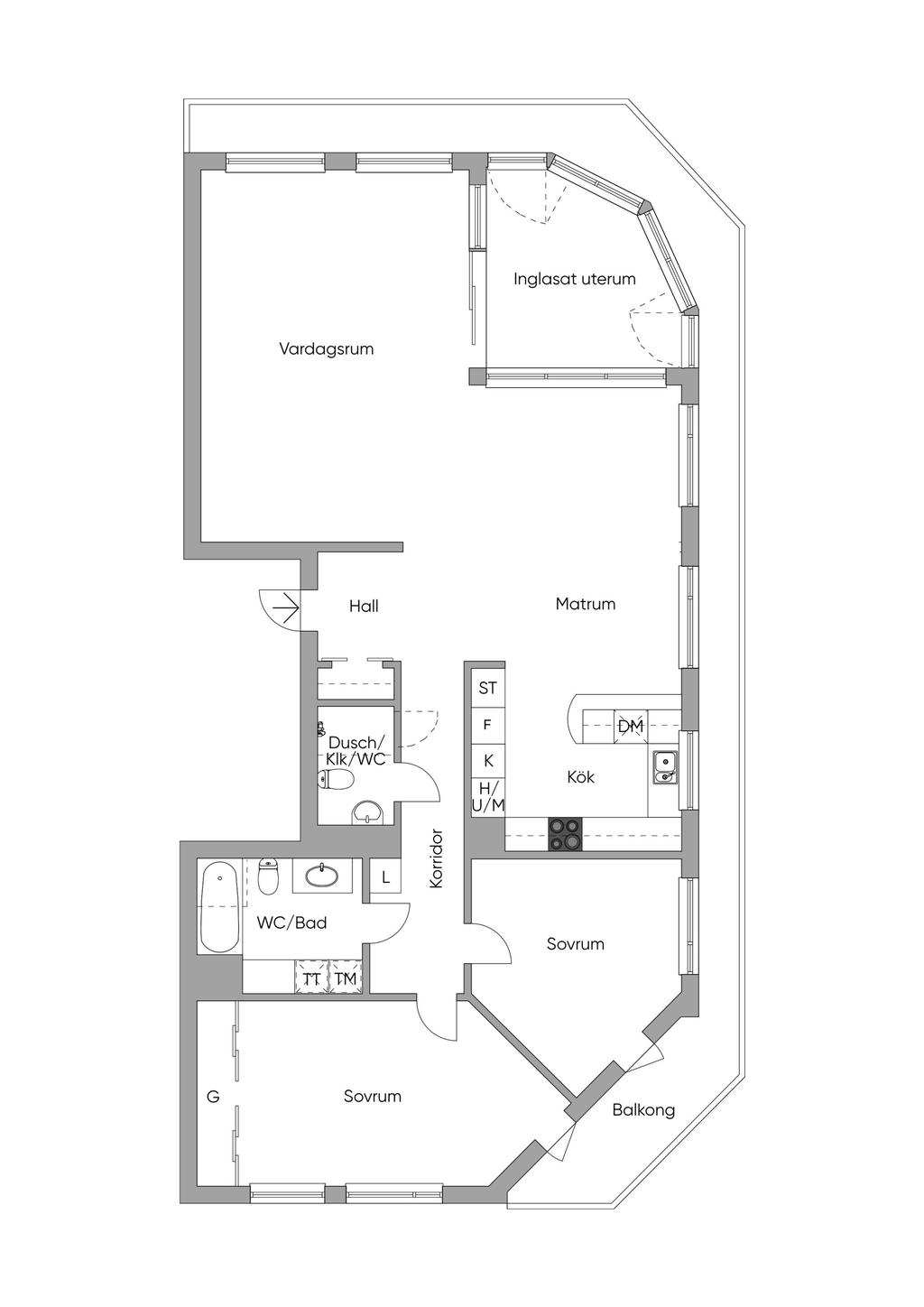 Hörntrea högst upp med potential, två badrum, inglasat uterum och parkeringsplats!