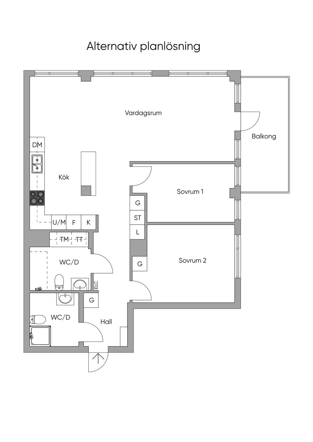 Stor 3a omgjord till en rymlig 2a på våning 7