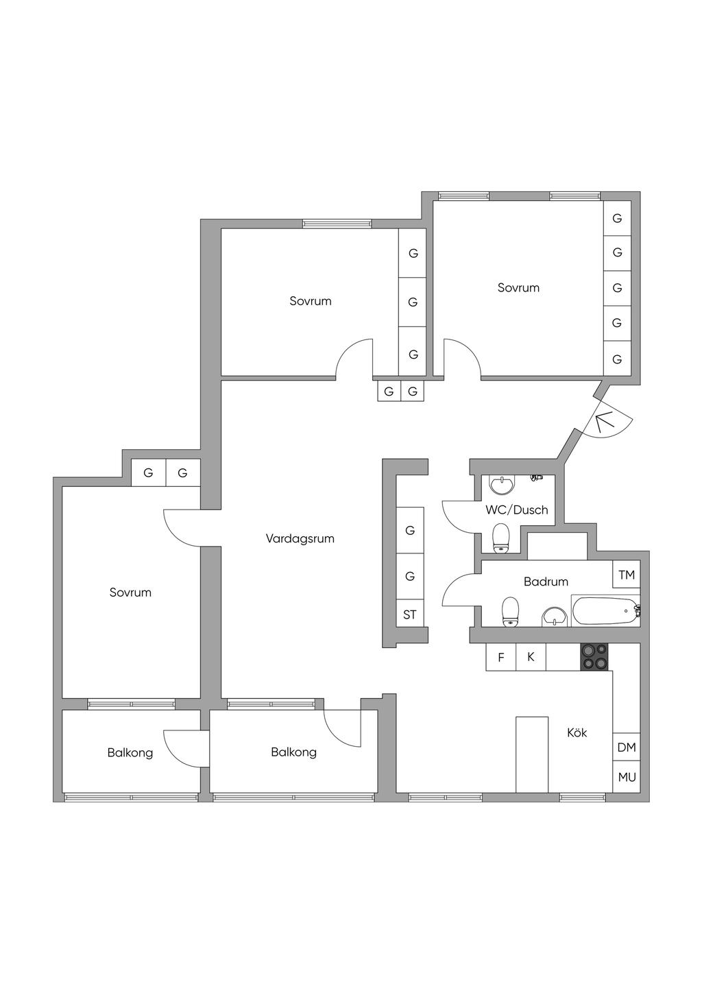 Välplanerad fyrarummare med dubbla balkonger på attraktiva Vallavägen 205 i Handen