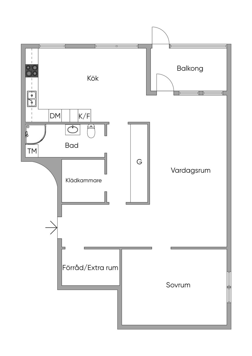 Välplanerad och ljus 2:a om 78 kvm med unikt extrarum och egen utgång från inglasad balkong