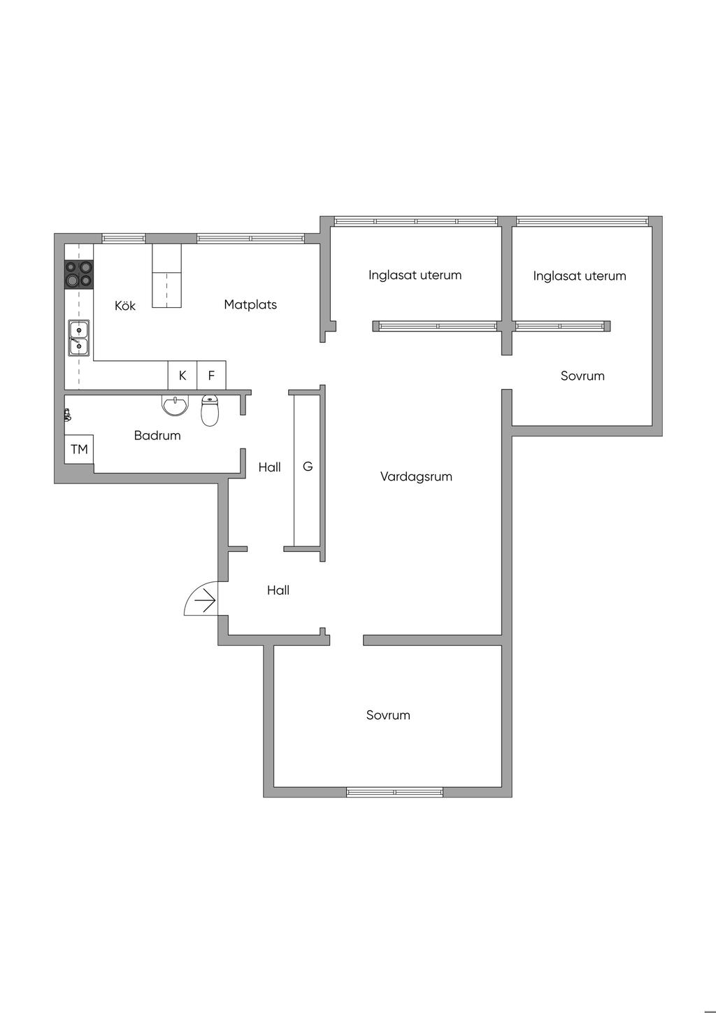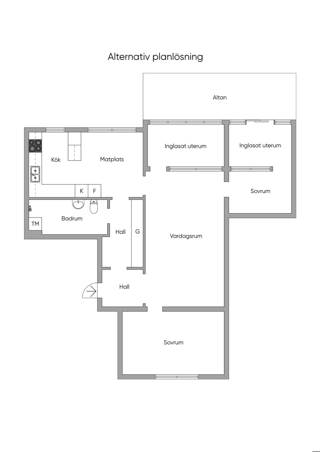 3a på markplan med inglasat ute rum och möjlighet till altan