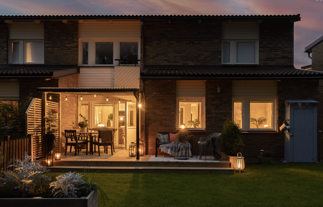 Stilren lägenhet med uteplats som ger radhus känsla