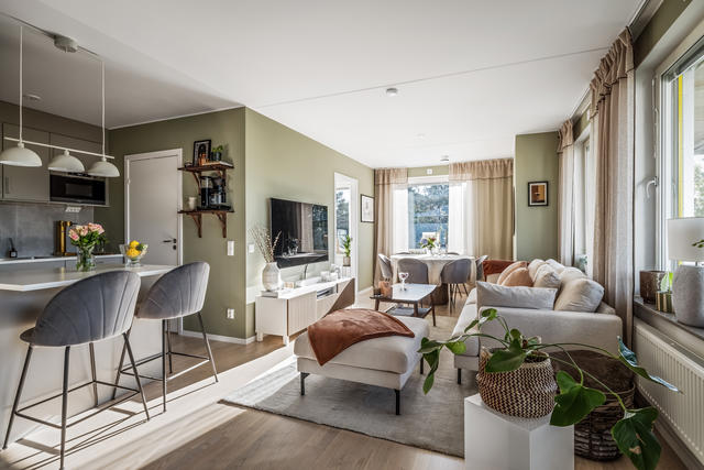 Mycket fin 3a med högt läge, stor inglasad balkong och gott om sol