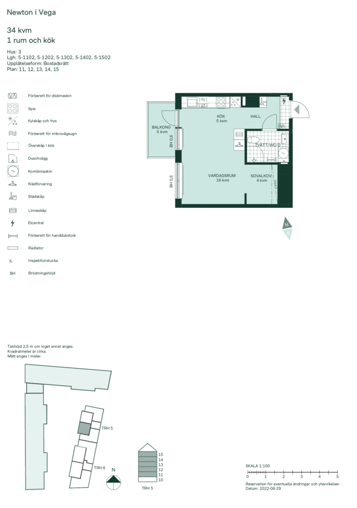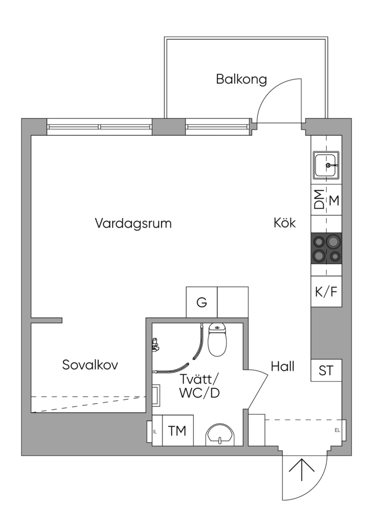 Nyproducerad 1a i Vega med sovalkov och balkong mot innergård
