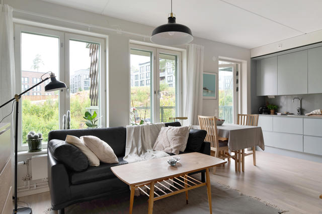 Modern 1:a med sovalkov och stor balkong med kvällssol