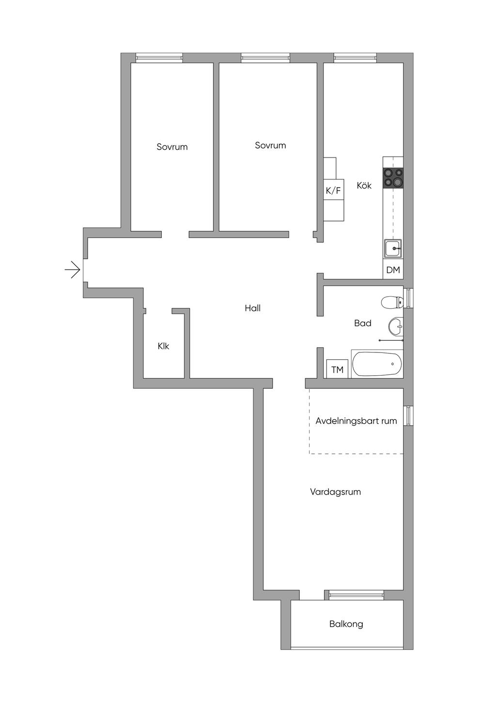 Rymlig 3a med gavelläge i hus med hiss