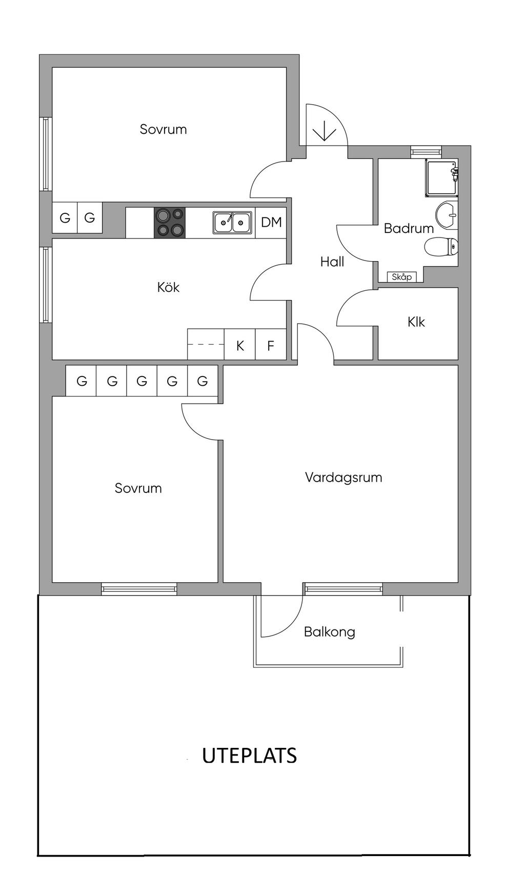 Stor 3:a med egen uteplats i Stortorp