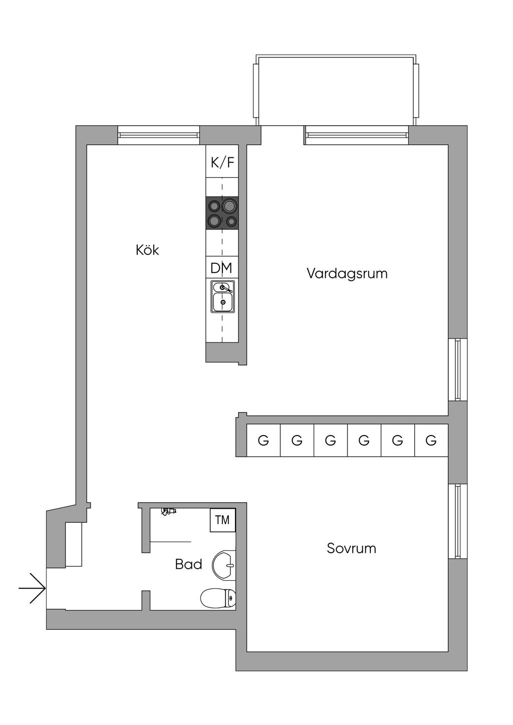 Stilren 2:rok med inglasad balkong. 6TR