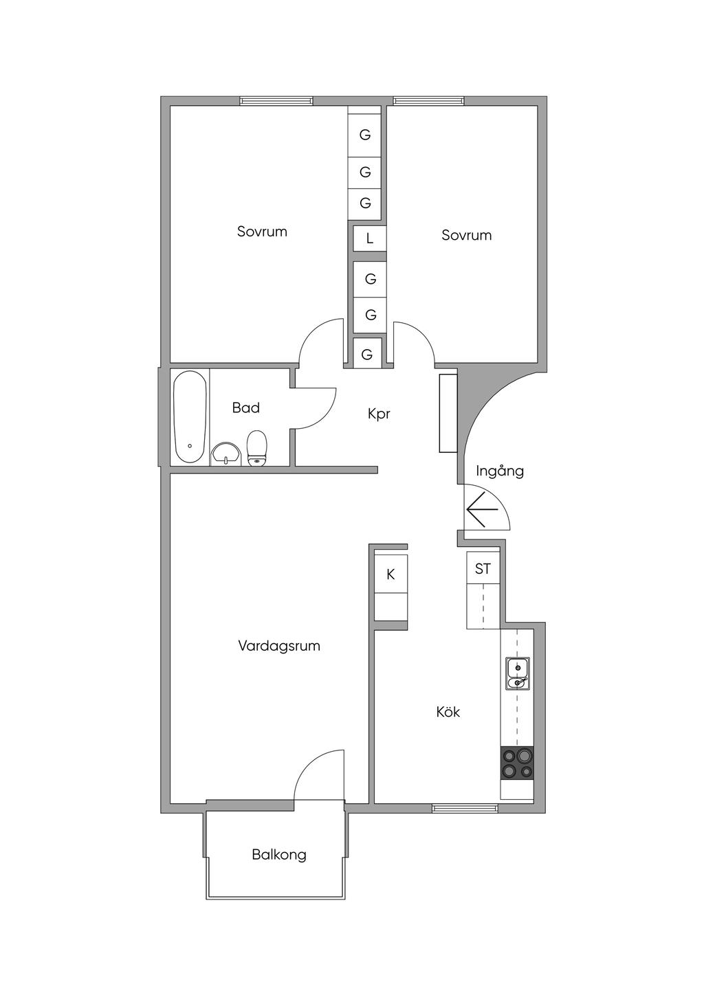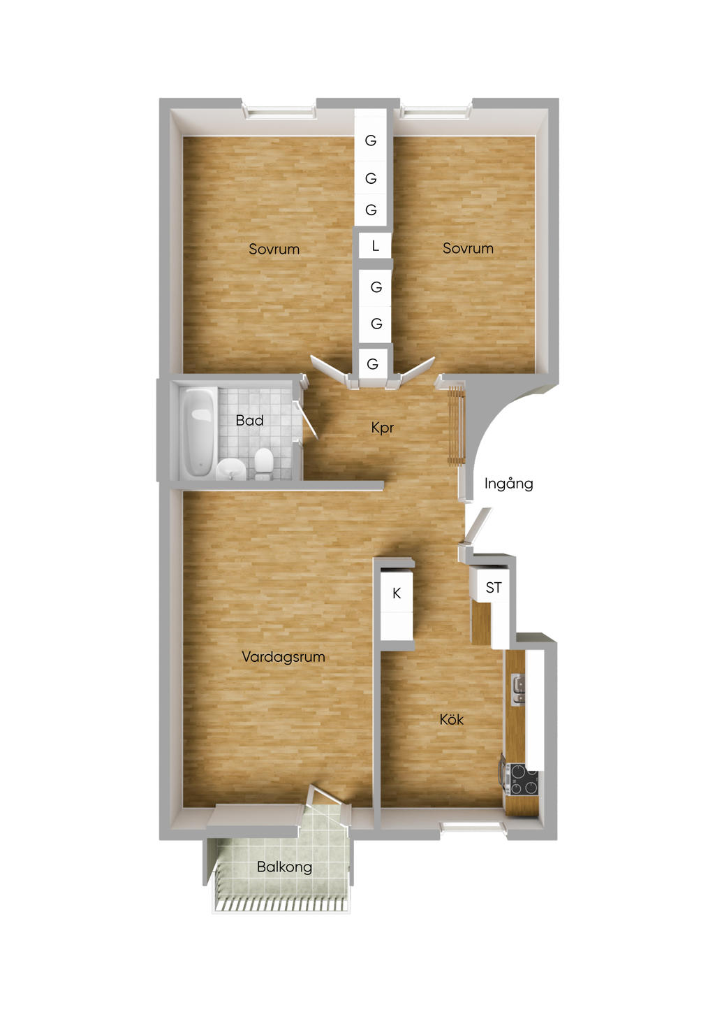 • Rum: 3, varav 2 sovrum