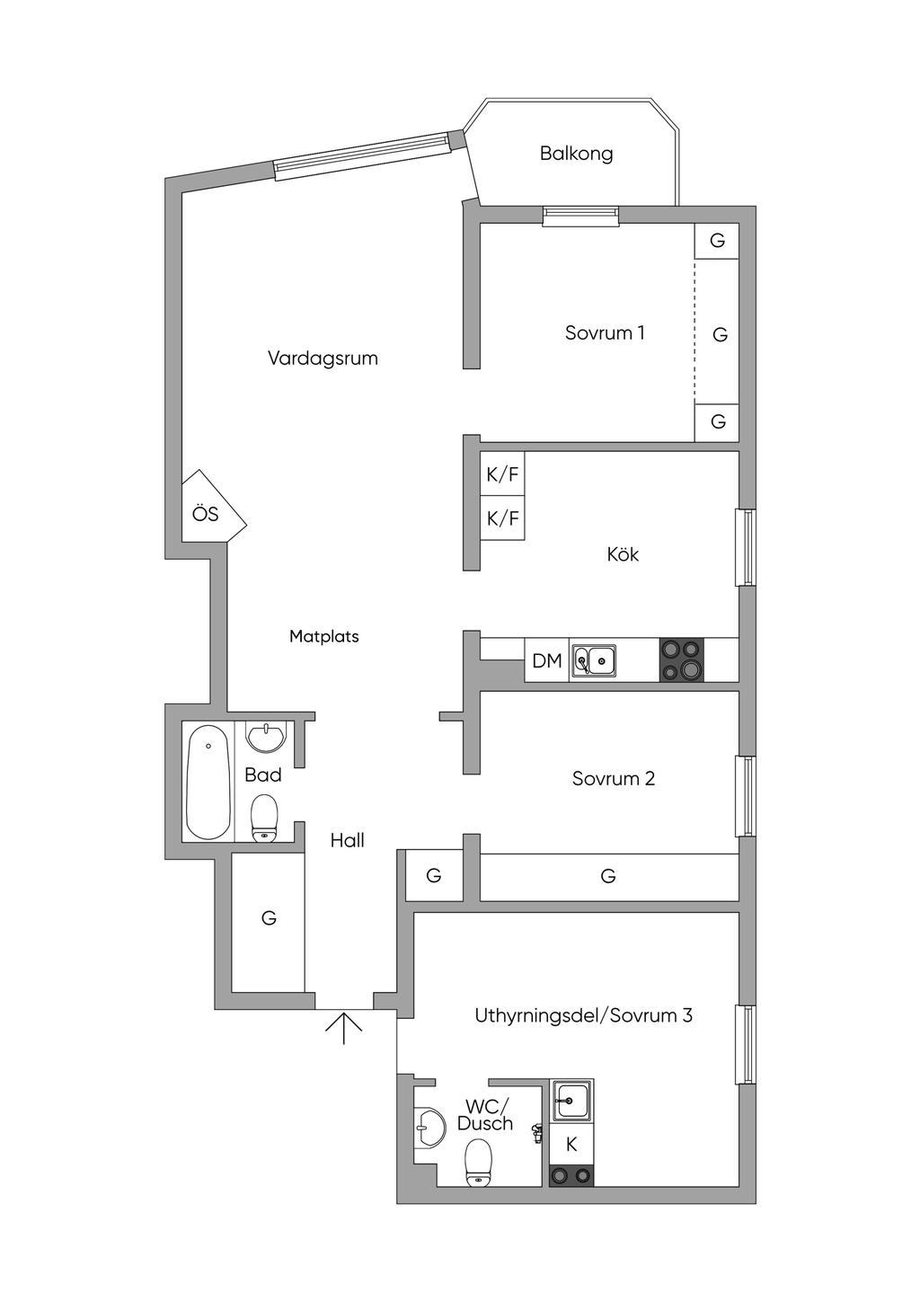 Renoverad och ljus 4,5:a med uthyrningsdel samt balkong i söderläge!