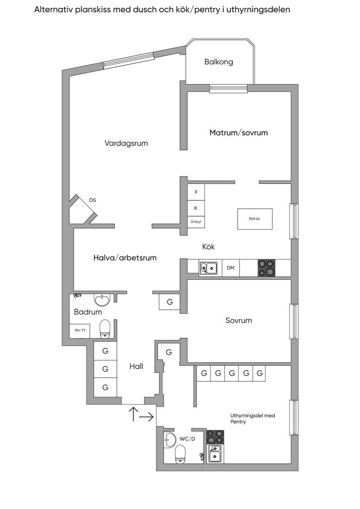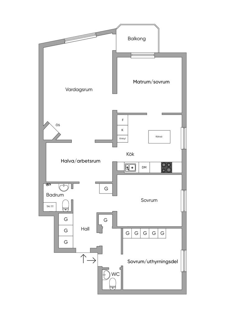 Renoverad och ljus 4,5:a med uthyrningsdel samt balkong i söderläge!