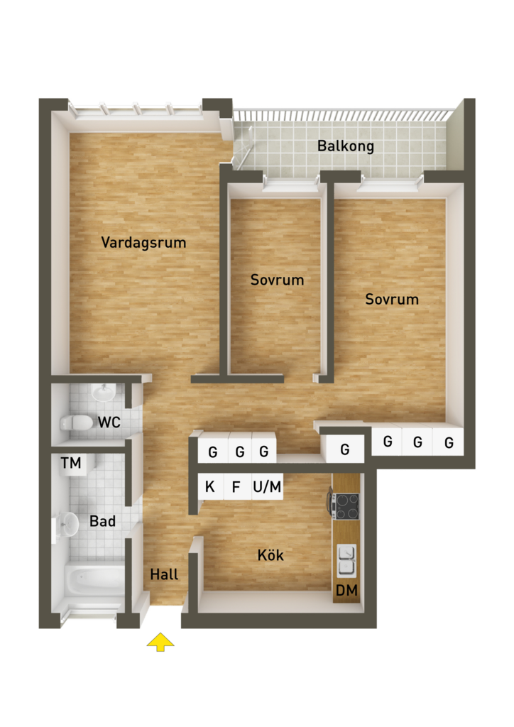 Hemtrevlig trea om 83 kvm med välplanerade ytor på första våningen! (Inglasad balkong)
