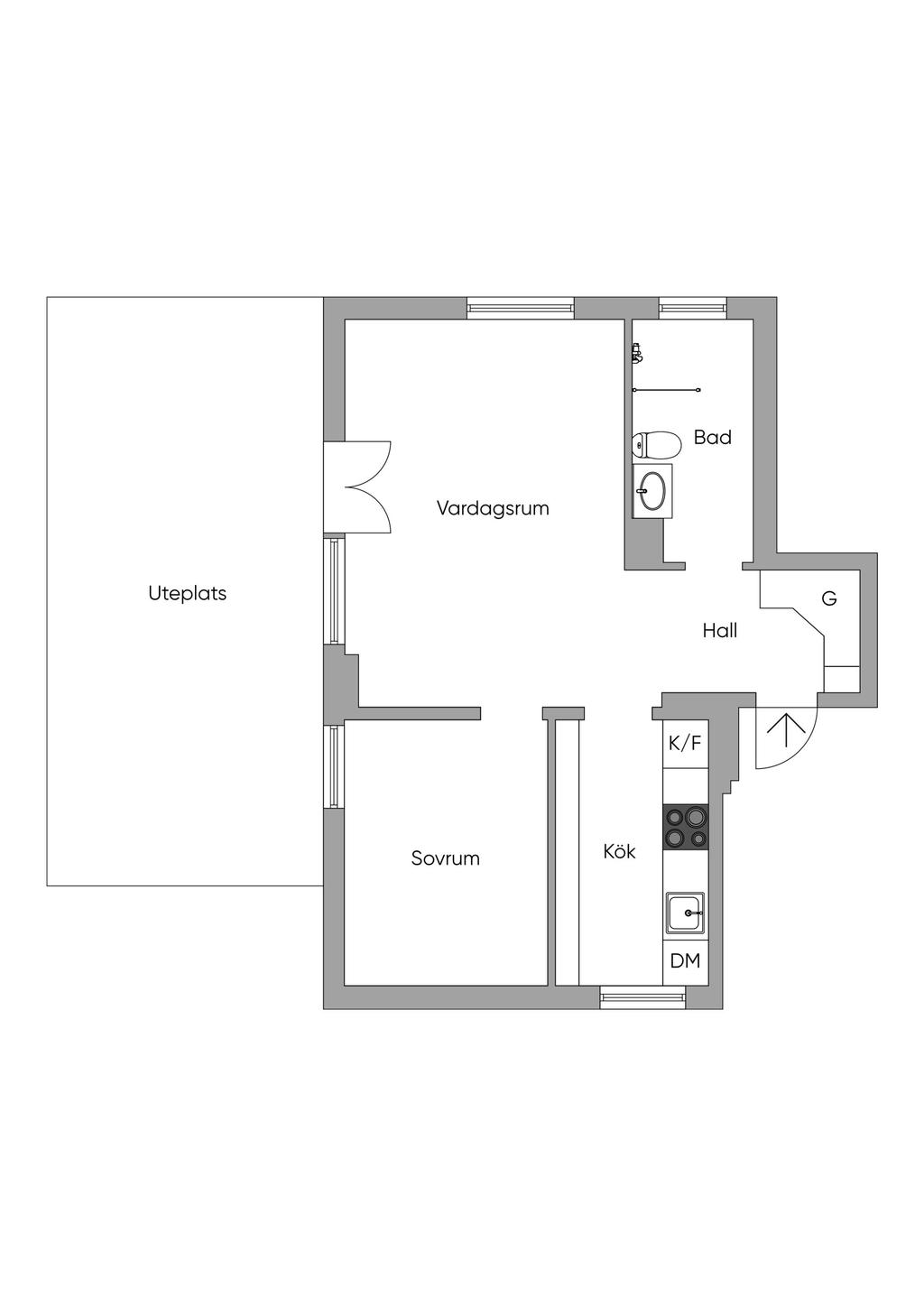 Välplanerad och unik gavel-2:a med stor uteplats om ca 21m2.