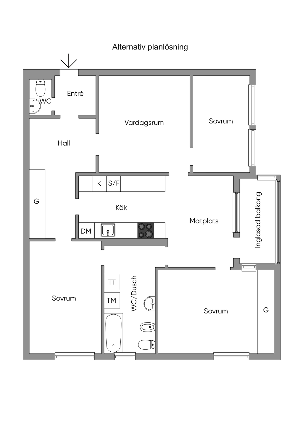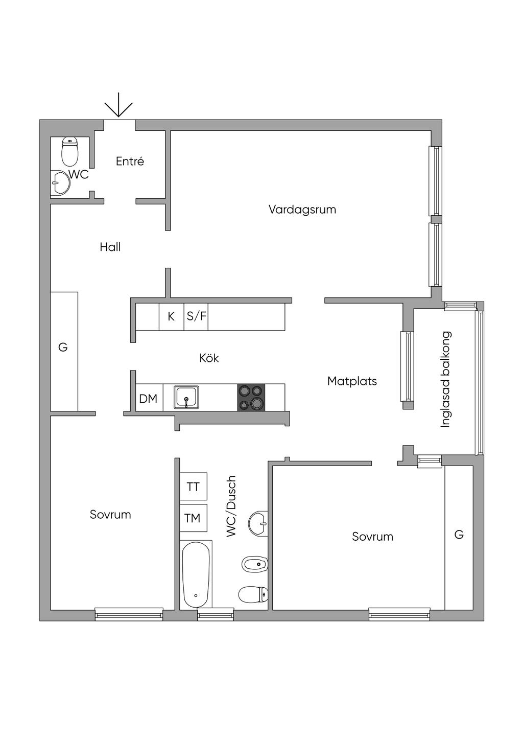 Ljus hemtrevlig trerumslägenhet med inglasad balkong!