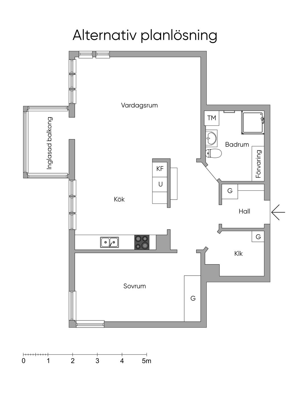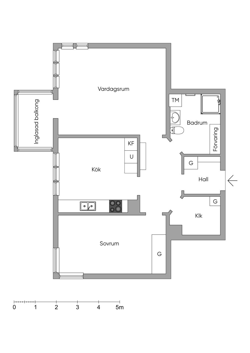 Rymlig 2:a med inglasad balkong!