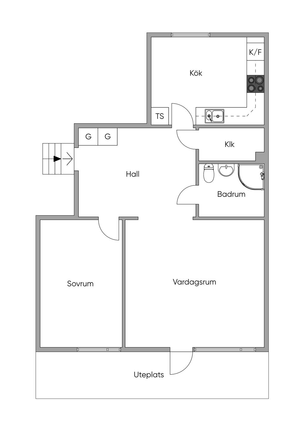 Stor 2:a med uteplats som skapar radhuskänsla!