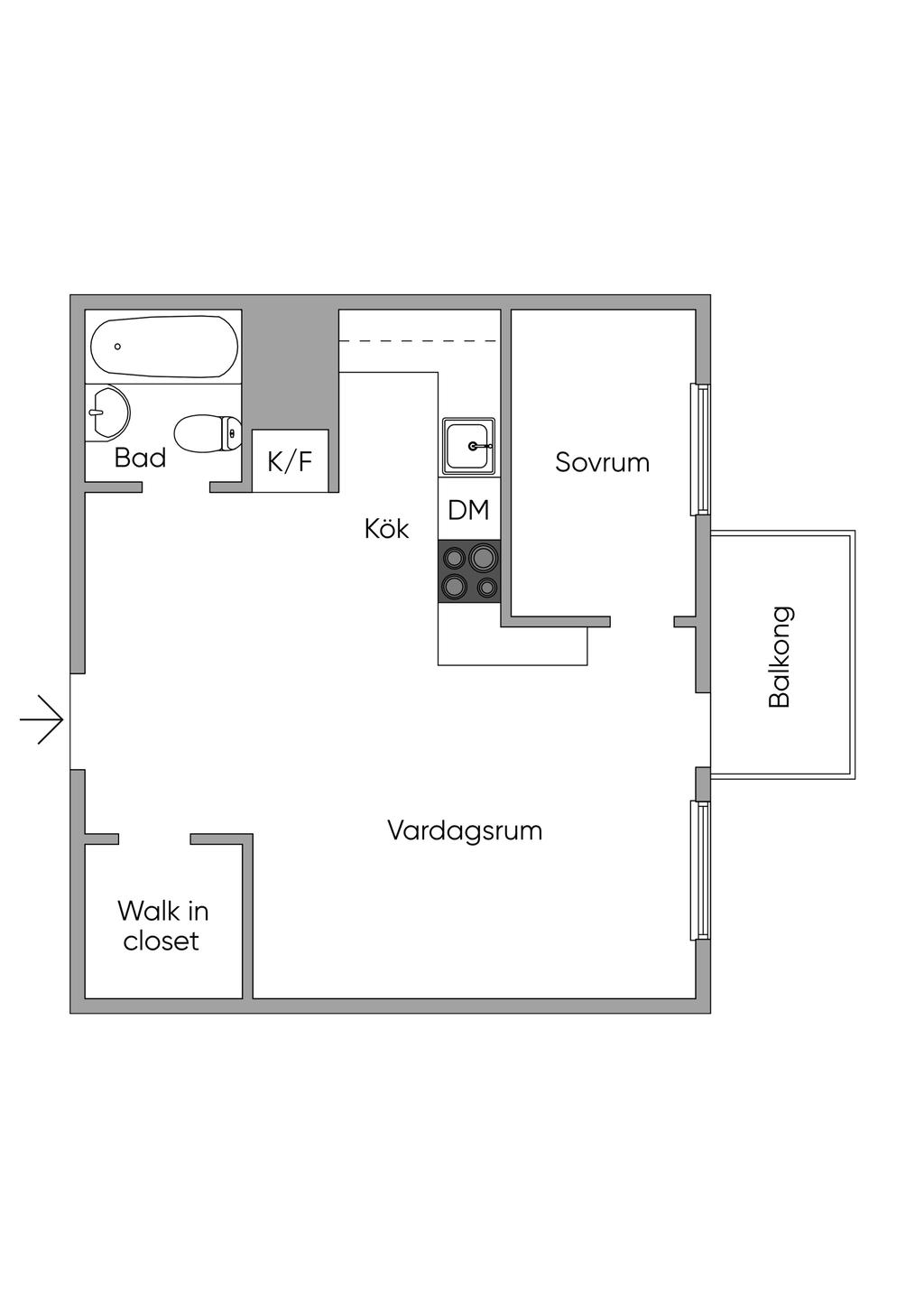 Välplanerad & ljus minitvåa med öppen planlösning och balkong!