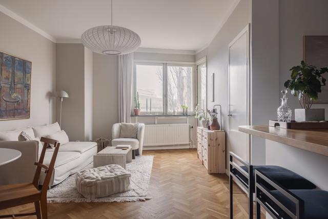 Stilren och optimalt planerad 2:a med balkong – 40-talscharm möter modern funktion